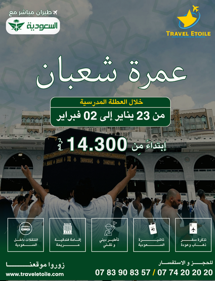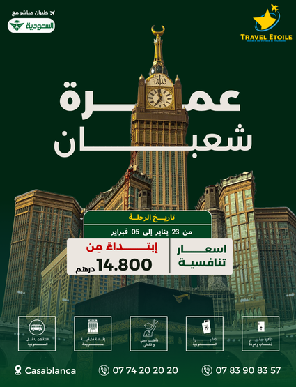 Posted on R SoukainaTrustindex verifies that the original source of the review is Google. وكالة في المستوى، الله ييسرPosted on E zahraTrustindex verifies that the original source of the review is Google. Tbarklah 3la ta3amoul dazet a7ssan tsafira ou OmraPosted on Y wahibTrustindex verifies that the original source of the review is Google. Equipe très professionnelle, à l'écoute et disponible pour répondre à nos questions et attentes. Sur place, l'équipe a été bienveillant et compétents, ce qui a rendu le voyage encore plus agréable et spirituellement enrichissant. Je recommande vivement Travel Etoile à tous ceux qui recherche un service de qualité et une vraie attention aux voyageurs. Un grand merci à Ayoub et son équipe pour ce voyage à Istanbul et la OmraPosted on Y RihaniTrustindex verifies that the original source of the review is Google. مجموعة شهر غشت 2025 تجربة رائعة مع احسن وكالة اربعة أيام باسنطبول أسبوع بمكة والمدينة موعدنا شهر دجنبر بإذن اللهPosted on Y achouriTrustindex verifies that the original source of the review is Google. صراحة وكالة في مستوى خصوصا عمرة و تركيا قولا و فعلا شكراPosted on S mota9iTrustindex verifies that the original source of the review is Google. وكالة في المستوى كانت رحلة ممتعة إلى لقاء آخر انشاللهPosted on L NajibTrustindex verifies that the original source of the review is Google. وكالة في المستوى كانت رحلة ممتعة إلى لقاء آخر انشاللهPosted on R OuhssineTrustindex verifies that the original source of the review is Google. Très belle expérience Istanbul Omra en octobre 2025.Posted on H FhailiTrustindex verifies that the original source of the review is Google. "خبرة رائعة من البداية إلى النهاية. كل شيء كان منظمًا بشكل مثالي."أتمنى لها توفيق